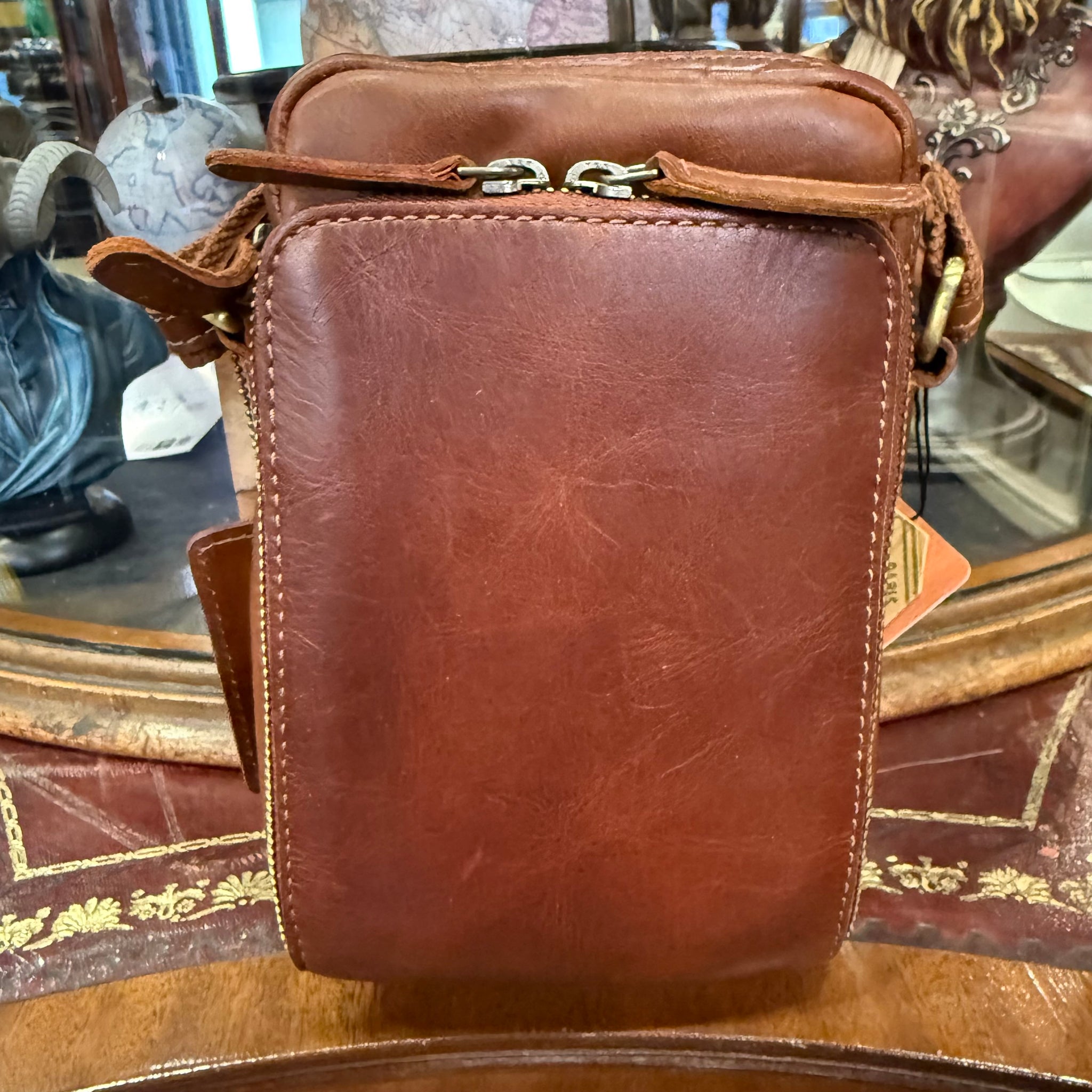 The Clayton genuine leather crossbody bag with an adjustable strap.  Top, back and front zips.